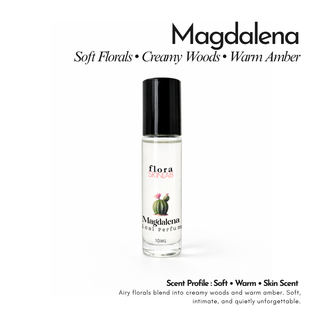 - Magdalena- She’s soft, but she lingers. Airy florals melt into creamy woods and warm amber, grounded by smooth musk and vetiver. Effortless. Ethereal. Unforgettable in the quietest way.